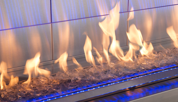 The Barcelona Lights linear fireplace offers a customizable look for any outdoor living space. Set the mood or match the season with interior LED lights and flames dancing on a bed of crushed glass. Weather-resistant stainless steel construction offers both durability and eye-catching appeal to outdoor spaces. Each Barcelona Lights fireplace allows single-sided or see-through installation. |